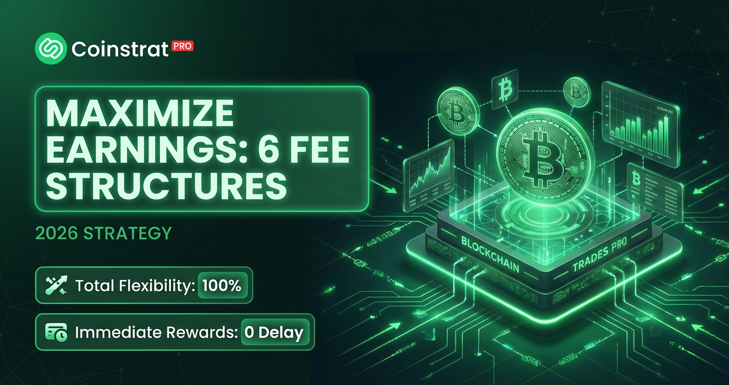 Master the art of dual income by leveraging Coinstrat Pro's 6-tier fee system. Learn how to combine Management, Volume, and Performance fees to build a stable, scalable trading business in 2026.